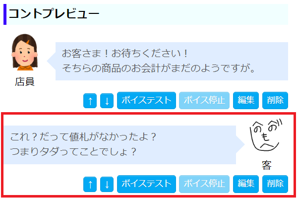 - プレビューにそのキャラでのセリフが追加されます。