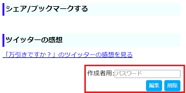 - 編集または削除を行いたい場合は、作成したページの右下からパスワードを入力して行うことができます。